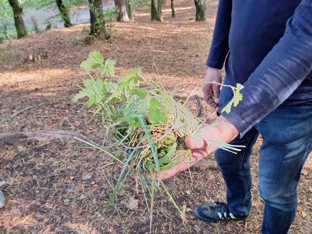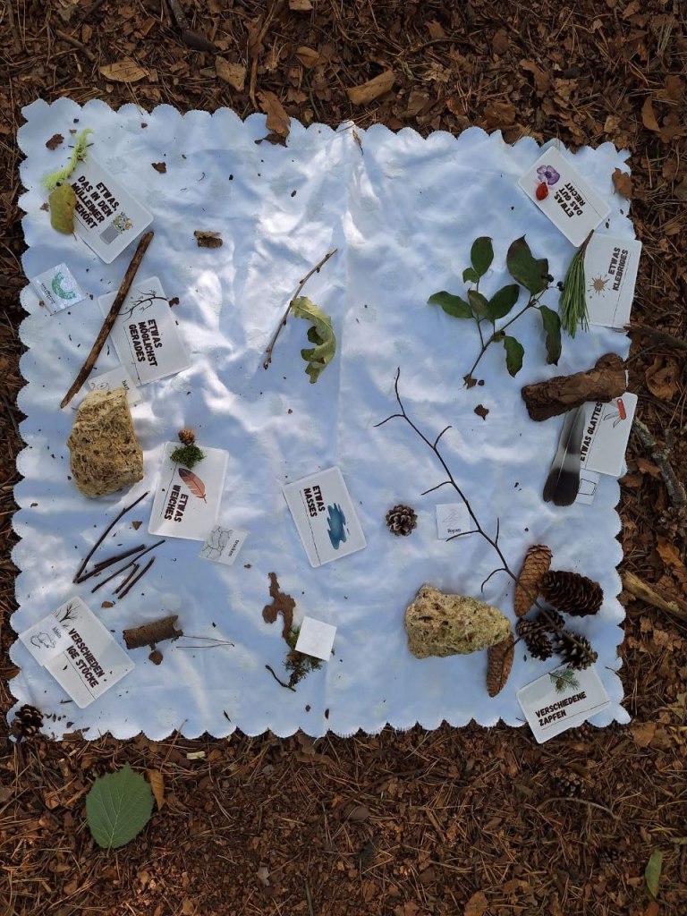 – Sammeln von eckig bis luftig, vier Elemente, Wald und Waldboden, im Laub und im