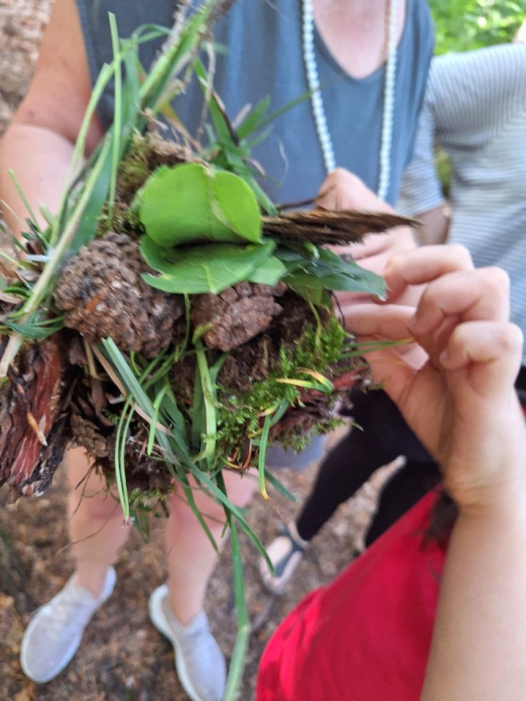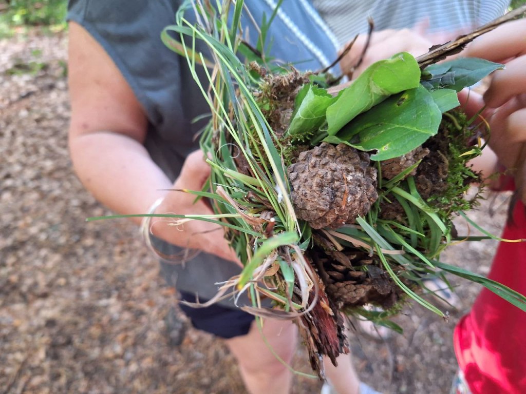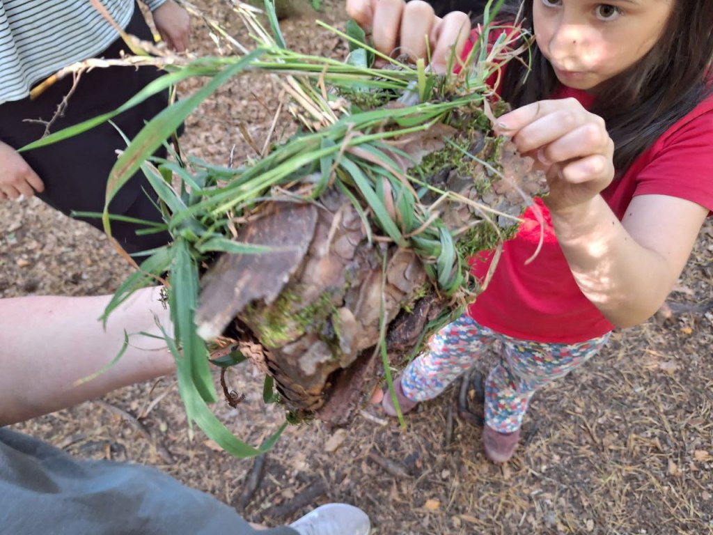 – Waldsofa bauen, Rat halten, picknicken, Rindenboote basteln und schwimmen lassen, den Eierwurf bestehen, Wald- und Naturkunst gestalten, Feuer selber machen, Laubschlafsäcke konstruieren und fertigstellen, Innere Bilder malen, Baumbilder, Gedichte und Texte hören und schreiben
